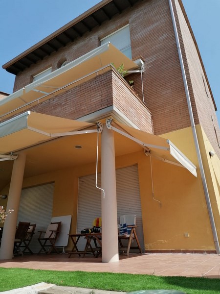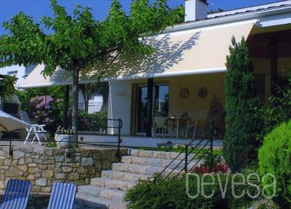 El toldo de brazo extensible o brazo invisible, protege y viste terrazas y balcones.