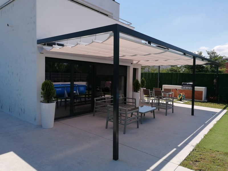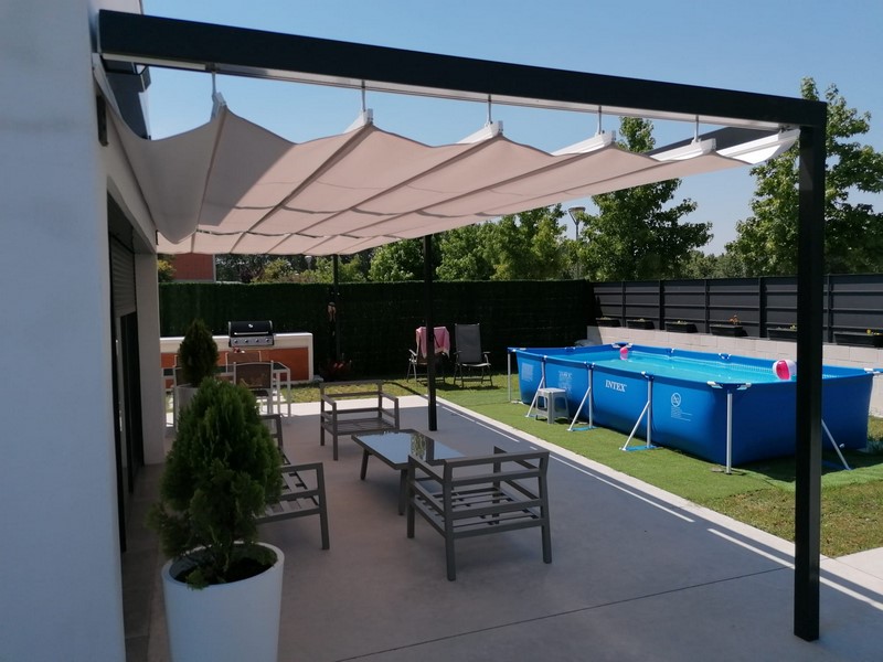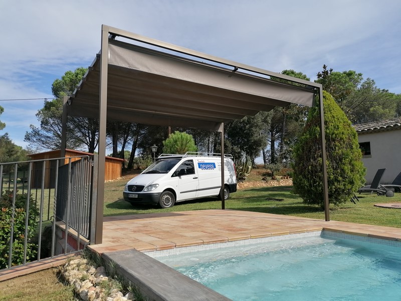 Su armazón y sus brazos (plegables o telescópicos) le permitirán subir y bajar la lona, de forma manual o motorizada.