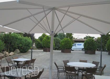 Con las sombrillas, toldos y parasoles para terrazas subministrados por Toldos Devesa garantizamos la sombra necesaria para hacer más confortables los espacios exteriores. Así mismo, algunas modalidades de parasoles cuentan con toldos laterales plastificados que actúan como parapetos frente al viento o la lluvia.